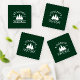Family Name Cabin Forest Green with Pine Trees Coasters