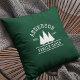 Family Name Cabin Forest Green with Pine Trees Throw Pillow