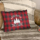 Family Name Cabin Red Buffalo Plaid with Pine Trees Accent Pillow