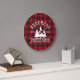 Family Name Cabin Red Buffalo Plaid with Pine Trees Clock