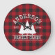 Cabin Family Name Red Buffalo Plaid Large Clock