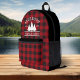 Family Name Cabin Red Buffalo Plaid with Pine Trees Backpack