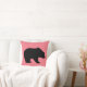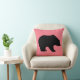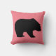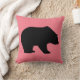 GRIZZLY BEAR CABIN DECOR PILLOW WITH LIGHT RED BACKGROUND.