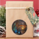 Cabin rustic lamplight scene brown blue cream classic round sticker
