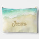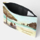 This beautiful zipper pouch features the famous arch (El Arco) at Lands End on the Baja peninsula in Mexico. The watercolor painting of the arches was painted by my daughter which makes this bag especially unique. Below the arches is a wave crashing along the shoreline with a happy couple sitting under a palapa, watching the sun set. Text says "Honeymoon Essentials." The back has a watercolor shoreline with a place to personalize with a name. Colors include brown, aqua, turquoise and sandy yellow.