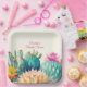 This paper plate features a beautiful illustration of cacti and a succulent. This design of wonderful plants is bold, beautiful and definitely eye catching for any festive event. The text on the paper plates are customizable to suit your needs.
