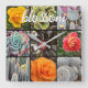 Cacti Roses Photo Collage Blossom Quote Script Square Wall Clock