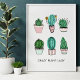 Crazy Plant Lady Cacti succulents potted plant illustration poster. Customize with your choice of text. Original art from artists own illustrations. Matching items available. Please use the message me button below for help with customization and special requests. © Zoe Chapman Design
