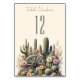Add a touch of rustic elegance to your wedding decor with this table number sign, featuring a beautiful arrangement of desert cacti and a vintage wagon wheel in a watercolor style. The nature-inspired design brings warmth and charm to your tables, making it perfect for a desert, rustic, or boho-themed wedding. Customize the text or table number on the card to suit your needs. Ideal for Southwestern, rustic, outdoor, or country-style celebrations. Matches beautifully with wedding stationery and signage from the same cactus & wagon wheel collection for a cohesive event aesthetic. Guide your guests in style with this charming cactus and wagon wheel table number sign—where love meets the spirit of the Southwest.