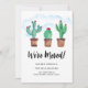This moving announcement card is decorated with watercolor cacti, a blue sky, and stylish typography.