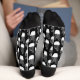 These are fun socks for anyone who is a lover of cacti and succulents to add to their wardrobe. This pattern features white line art cacti on a black background.