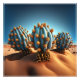 in this artwork, a cactus plant stands tall and powerful in a dry, arid desert landscape ,where the contrast between its spiky and rough exterior creates a unique and stunning visual appearance.