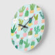 Cactus diversity, vintage seamless background. large clock