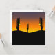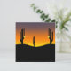 * Pretty illustration of a desert sunset scene with saguaro cactus silhouettes and a couple of yellow desert flowers. Choose from several shapes and sizes for this invitation.