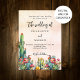 Cactus flowers rustic rose gold wedding invitation
