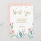 This watercolor cactus and faux gold calligraphy baby shower thank you card is modern but elegant. It features a faux gold brush calligraphy font heading and dots as well as some watercolor flowering cactus images at the base of the card. This girl's cactus watercolor and gold calligraphy baby shower thank you is a lovely way to thank your guests for coming to your baby shower.