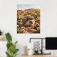 An adorable cactus hedgehog rests in a warm desert garden filled with blooming succulents and golden light. Its rounded hedgehog body is covered in soft cactus spines, layered green textures, tiny flowers, and charming botanical details while keeping a sweet expressive face and tiny paws. Warm sand, polished stones, distant dunes, and evening sunshine create a cozy desert mood. This playful yet refined design adds joy and character to nurseries, kitchens, boho spaces, or gift collections. Perfect for hedgehog fans, plant lovers, and cute nature-inspired decor.