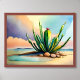 A lush cactus painting showcases a desert scene, where cacti thrive amidst rocky terrain. Created using delicate watercolors, the artwork captures the hardy beauty of plants in their natural habitat. This portrayal of a desert oasis hints at the resourcefulness of life in arid regions, making it a compelling representation of the rugged yet captivating Western landscape.