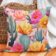 This vibrant pillow showcases a blooming cactus garden set against a soft blush pink background. Featuring detailed succulents with large yellow, orange, and pink blossoms, the design bursts with color and warmth. Perfect for a southwestern, boho, or summer-inspired décor style, it adds a lively and cheerful accent to sofas, patios, or bedrooms.