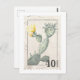 This postcard features an illustration of a cactus / cacti on a postage stamp.