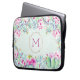 This personalized cactus computer sleeve features a modern floral design with geometric monogram and watercolor cactus and succulents plants and flowers. Personalize it with an initial.