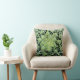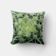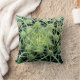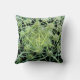 This throw pillow takes you right into the center of an exotic cactus pattern. Green and white spines radiate in a circular abstract design on a black background.
