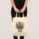 The printing came out very well, better than I had anticipated. The natural color fabric is sturdy with strong seams and comfortable handles. This tote fits easily over my shoulder. As it is filled, the bottom flattens out--very cool! I would buy this product again. This grocery tote holds a lot of groceries! The image quality was very good. The colors were a little darker than I had expected. The darkness may have been due to printing on a natural color fabric rather than on white. The cat design is attractively centered on the tote. The spirit of the design is very lively, just as it appears on the Zazzle website.