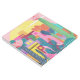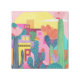 A vibrant desert scene featuring blooming cacti, colorful geometric buildings, and a glowing sunset. The bold color palette blends warm pinks, yellows, and deep blues, creating a lively Southwestern atmosphere. Perfect for adding a touch of warmth and artistic charm to any space!