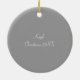 Lightweight, smooth, pure white ornament with nice sheen. Perfect size to be seen from across the room ... and to attract closer inspection! Price was great for ordering enough for the whole family! Clear, bold black design just as requested. Matches the order exactly. Just so nice!