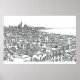 Architectural ink drawing of Cadiz Spain in graphic style.