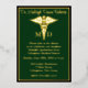 Caduceus Medical School Graduation, Green/Gold Foil Invitation