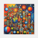 A.I. created meaningless geometrical celestial abstract composition of planets, stars, lines, shapes and colors in an arrangement which pleased the senses of the artist.