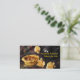 Feast your eyes on this beautiful business card which advertises a bakery and cafe full of pastries, breads, bagels, rolls, muffins, pies as well as coffee, tea and juice. A homemade orange apricot tart in a delectable pastry shell is served on a glass plate accompanied by a navy blue teapot and three yellow gold carnation flowers. All are set on a lovely paisley fabric in shades of red, green, blue and purple. The fine art photography has been enhanced to produce the feeling of an old still life painting. A tiny enticing plate of yummy peanut butter cookies and a demitasse cup of espresso complete with lemon peel decorate the back. All text can be customized to suit your individual business needs.