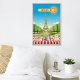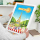 An editable French Parisienne vintage style poster with two cups of coffee on a cafe table overlooking the gardens of the Eiffel tower with a box of macaron cookies. Add a date on the box and names and place on the menu of a special memory, perhaps an engagement, a honeymoon or milestone birthday. You can even change the banner heading too. These budget-friendly prints make excellent presents for friends, family, and colleagues. Buy a frame from your local store to complete the presentation or optionally purchase a frame from Zazzle at checkout for an extra cost.