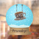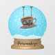 This snow globe features a hanging wooden cafe sign shaped like a cup of coffee. It is done in colors of blue, brown and white and ready for you to personalize.