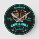 Cafe Grill Retro Fifties Neon Effect Any Name Round Clock