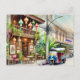 The painting portrays the storefront of a cozy coffeeshop tucked into a lively Bangkok street. The cafe’s rustic wooden facade is complemented by colorful hanging lanterns and lush tropical plants, creating a warm and inviting atmosphere. Traditional Thai umbrellas and intricate carvings add a cultural touch to the design. Small outdoor tables with vibrant cushions sit under the shade of leafy trees, offering a perfect spot for people to relax and enjoy their coffee. In the background, tuk-tuks and bicycles pass by, adding a sense of movement and life to the serene yet vibrant setting. The soft and vibrant watercolor hues capture the everyday charm of this neighborhood gem.