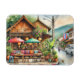The painting beautifully portrays a cozy coffeeshop tucked into a quiet street in Chiang Mai. The cafe exudes rustic charm, with wooden tables, colorful cushions, and tropical plants adorning the entrance. Traditional Thai umbrellas cast gentle shadows over the outdoor seating, adding a splash of vibrant color to the scene. Inside, soft natural light filters through large windows, illuminating the wooden decor and creating a warm and inviting ambiance. The street outside is peaceful, with locals strolling or cycling past, framed by a lush, mountainous backdrop that completes the idyllic setting.