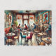 This watercolor painting beautifully depicts an everyday scene in a small local cafe in Bronzeville, Chicago, emphasizing the neighborhood's vibrant cultural heritage. The cafe exudes a cozy and inviting atmosphere with walls adorned with artwork celebrating African-American culture. The furniture, a unique mix of vintage and modern styles, creates a welcoming space that reflects the community's eclectic charm. The color palette includes deep earth tones and vibrant splashes that mirror the rich history of Bronzeville. Patrons, representing a diverse cross-section of the community, are engaged in lively conversations, enjoying their coffee, or working on laptops. The backdrop of soft blues music enhances the laid-back vibe, making the cafe a perfect retreat in the heart of the city.