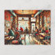 The watercolor painting beautifully captures an everyday scene in a small community cafe in Bucktown, Chicago, showcasing the unique local vibes of the neighborhood. The cafe is depicted with a cozy, bohemian interior, featuring eclectic furniture, vibrant wall murals, and whimsical strings of fairy lights that create a charming ambiance. The color palette is warm and inviting, dominated by deep reds, oranges, and browns that enhance the welcoming atmosphere. Patrons of various ages and backgrounds are seen enjoying their time, some engaged in deep discussions, others quietly reading or working on their laptops. The cafe exudes a casual and friendly atmosphere, underscored by a community bulletin board filled with local events and notices, which bolsters the sense of connection and local charm. This scene perfectly encapsulates the lively and close-knit spirit of the Bucktown community.