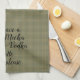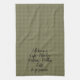 Funny, country style towel reads I'll have a Cafe-Mocha-Valium-Vodka Latte to go please. The towel is a light tan with a red and medium tan checked border.