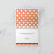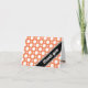 Thank you cards with an assorted polka dot pattern with alternating sizes of white circles over a cafe-style orange. "thank you" is printed diagonally in white on the front over a diagonal black stripe across the lower right corner. The inside is custom printed with your own text, or may be easily left blank handwriting your own sentiments of thanks. Surrounding this template text area is the same assorted polka dot pattern, a unique element as opposed to your typical white interior. This style and color scheme make these cards an appropriate choice for Bridal Showers, Baby Showers, and Birthdays.
