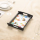 Small Café Serving Tray, Black with Tropical Drinks. Entertain in style with this customized serving tray! Printed in full color, the serving tray comes in two sizes with a black or natural wood finish. Personalize with your photos, texts, and designs for a high quality serving tray that’s perfect to match your décor or send as a gift to your favorite hostess. Designs printed in full color on high quality hardboard panel with glossy finish. Dimensions: 14.5" w x 10" l x 2.125" d. Available in black or natural wood finishes with handles on two sides.