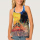 Women's All-Over Print Racerback Tank Top, White Piping, S