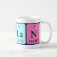 Cailan spelled out as Ca I La N (Calcium Iodine Lanthanum Nitrogen) on a mug for the scientist in you.