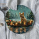 Set sail into the magic of the holiday season with this beautifully detailed illustration, showcasing a proud dog sitting in a festively decorated boat, gliding across a serene Christmas lake. The twinkling lights from nearby pine trees reflect off the water, casting a warm, festive glow that enhances the cozy ambiance. Ornaments dangle from the boat's sides, while glowing lanterns light the way, creating a scene that captures the true essence of Christmas warmth and joy. This nostalgic artwork brings a touch of holiday magic to any space, perfect for those who cherish the spirit of the season.