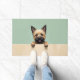 The soft sage mint green background adds a fresh and natural feel, perfect for welcoming entryways. Designed with extra space at the top and bottom, it allows easy personalization with names, welcome messages, or custom text—making it ideal for unique dog-themed doormats and thoughtful gifts.