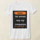 My overall review is that the T-shirt is nice, it fits true to size however the font is significantly smaller than advertised and you can't read it. The printing is unreadable and there is a strain to read it. It does not look like the advertised product. Maybe the shirt color is darker or a larger more visible font should have been used. Photos with and without flash and font is barely legible.