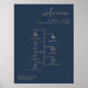This wedding icon timeline and welcome sign features an edgy handwritten font and modern minimalist design and a modern navy blue and gold color combination. Click 'click to customize further' in the personalization section to open up the full editor. To add new icons, visit https://www.svgrepo.com/ and search the icon you need. Download as an svg and then drag and drop it into the Zazzle editor. Change the color of the icon on the right-hand side of the editor.