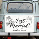 Add a touch of modern romance to your grand exit with our contemporary "Just Married" design, featuring a modern doodle wedding cake and a pair of toasting glasses. Perfect for the couple's getaway car, this stylish banner brings a fun and festive flair to your departure, announcing your newlywed status in a memorable way. Drive off in style and let the world celebrate your love with this delightful addition to your wedding day decor.